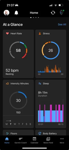 Screenshot rechts sind Inspirationen aus der GARMIN App.